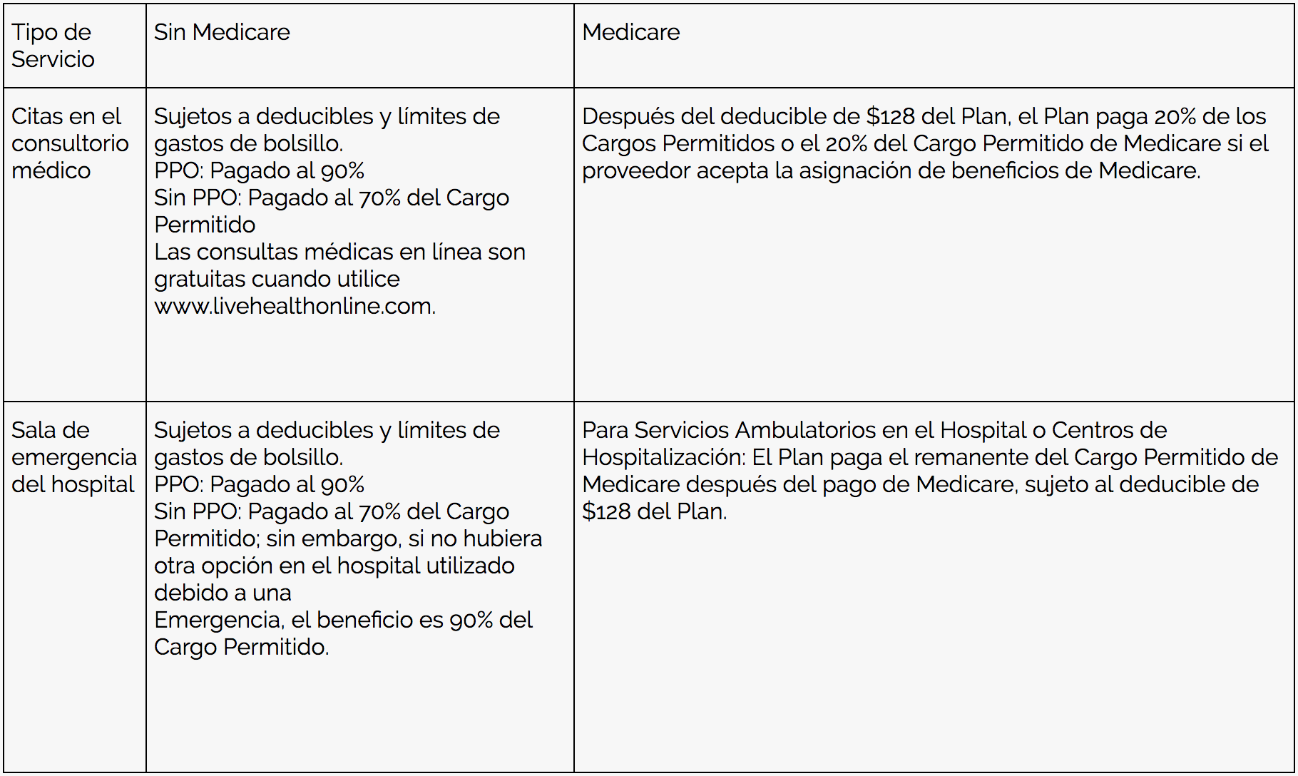 Los Jubilados que Califican tienen la opción de inscribirse en el Plan PPO de Indemnity o Kaiser (siempre y cuando el Jubilado viva dentro del área de servicio de Kaiser). Ambas opciones incluyen beneficios médicos, de recetas médicas y de visión. Los Jubilados deben pagar una parte del costo de la cobertura, que por lo general se realiza mediante una deducción de su beneficio de Pensión. Además, cualquier Jubilado puede inscribirse en una de las dos opciones dentales proporcionadas a través de Delta Dental. Las primas por la cobertura dental se deducirán de su beneficio de Pensión.